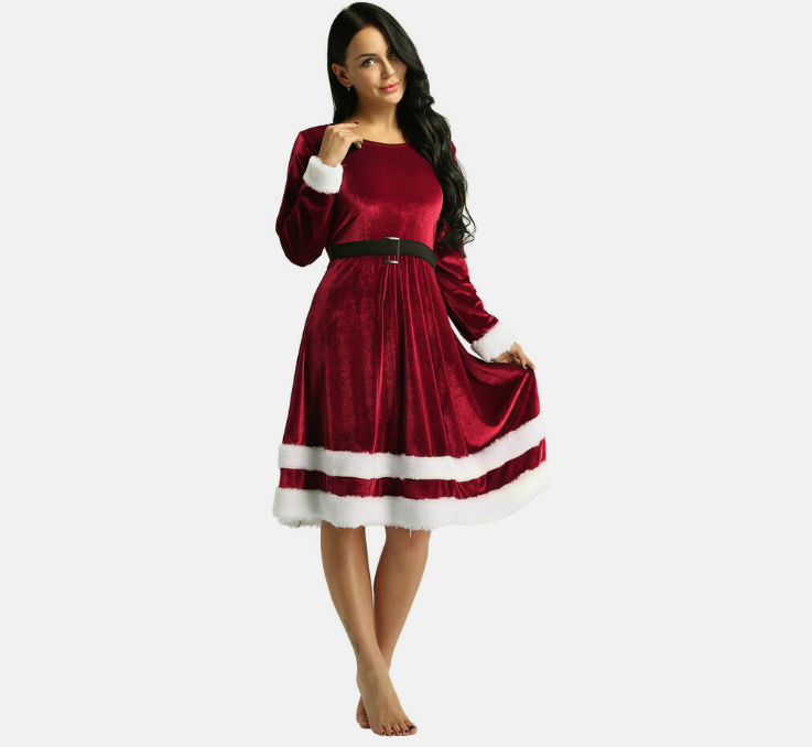 Paired with a black belt at waist and a hat will stand you out on Christmas Eve. Made of soft velvet fabric, comfortable to wear.