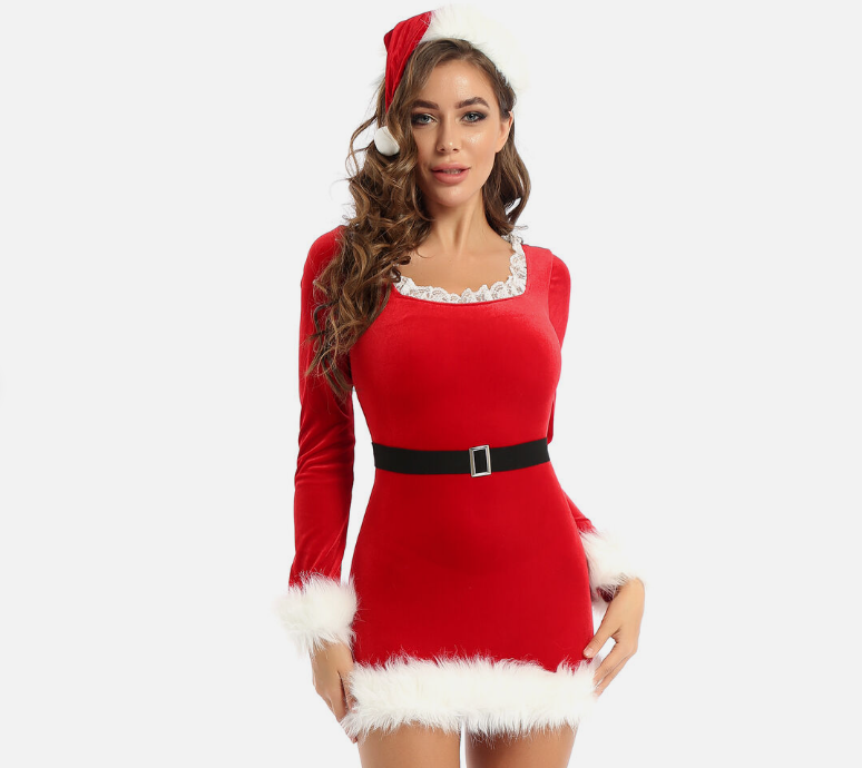 Women’s Santa dress costume Christmas cosplay decoration outfits.