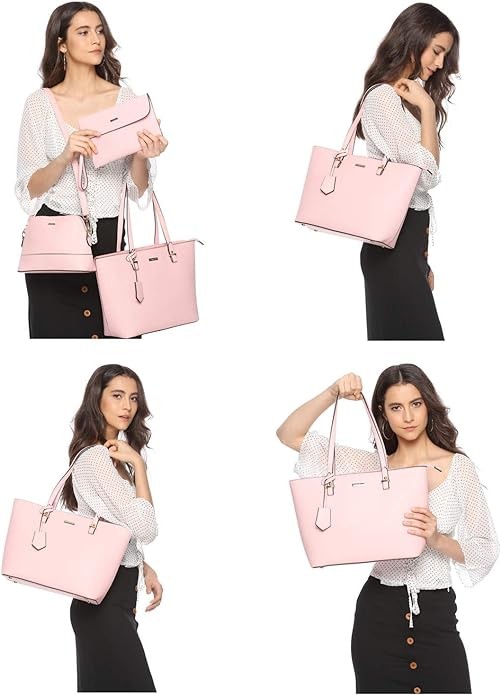 • Tote bag Pockets:One main zipper compartment with one inner zipper pocket,one back pocket and two slot pockets. 4pcs: One large handbag+one messenger Bag:+wallet clutch+card holder. Perfect for dating,shopping,working,traveling, vocation, party and other occasions and keep your daily items well organized.