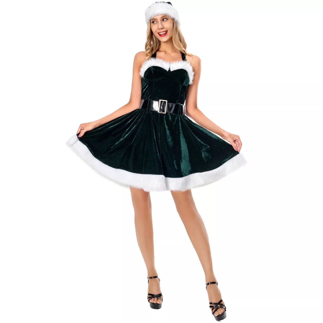 Women Sexy Christmas Stage Show Adult Costumes Uniform Set Skirt Dress Full Set