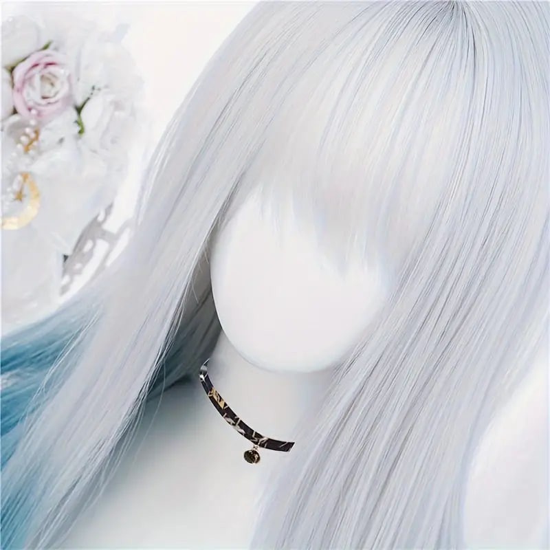 women synthetic wig long straight ombre two tone silvery grey blue hair for cosplay with bangs anime cosplay wig costume wig for halloween party details 1women synthetic wig long straight ombre two tone silvery grey blue hair for cosplay with bangs anime cosplay wig costume wig for halloween party details 1