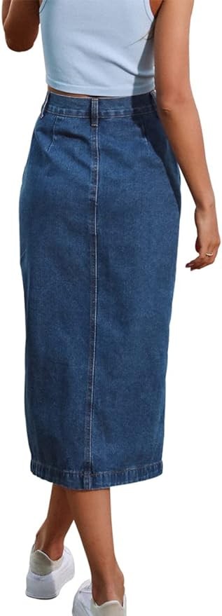 • ♥FEATURE: Blue midi jean skirt,wrap jean skirt,long denim skirt midi length,button closure,perfect stretchy,solid color,straight,No Pockets.