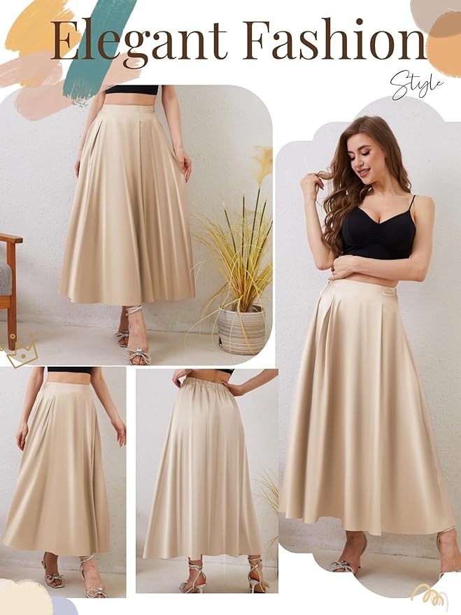 【Material】 Satin maxi skirt, the fabric is made of polyester and spandex, super soft and comfortable to the touch, skin-friendly, comfortable and light to wear, skirts for women suitable for all-day wear.