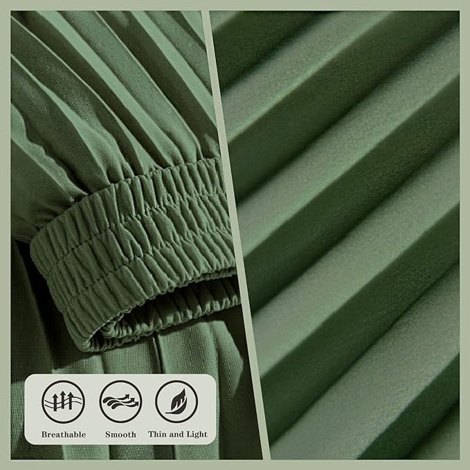 • Green Pleated Skirt Size: XS, S, M, L, XL, XXL; The Basoteeuo Midi Long Skirts Easy wash, Easy hand wash or machine washable in cold water; hang dry