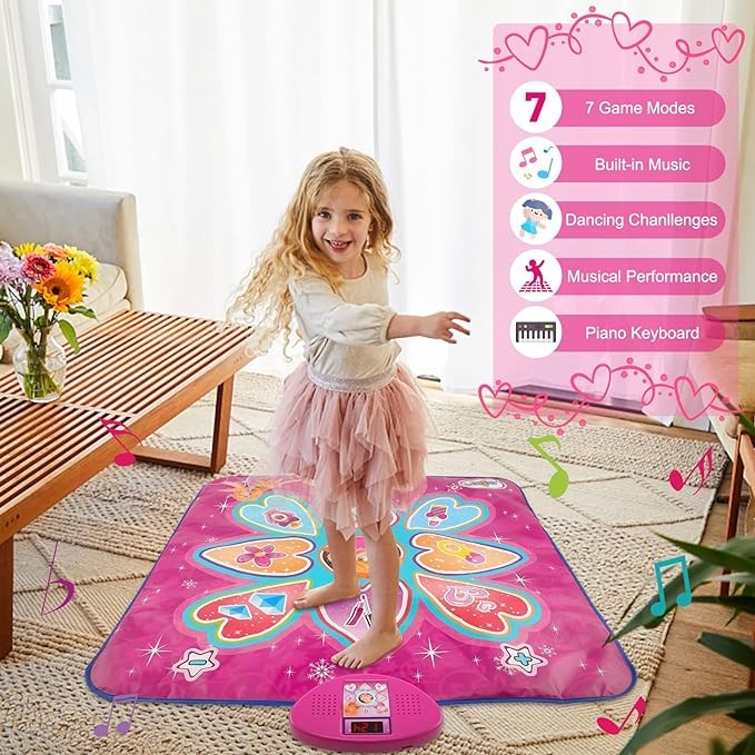 ?【The Perfect Gift for Kids】: This music dance mat is a great early education toy that helps improve your child's hand-eye coordination and strengthens parent-child interaction. It's the perfect gift for 3-8 year old girls.