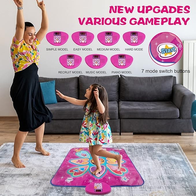 ?【Portable, Convenient, and Durable】: Packaged in a gift box and foldable for easy carrying, this music dance mat is perfect for indoor and outdoor use. It's ideal for 3-8 year old girls and has passed CPSIA and ASTM standards testing, making it durable and easy to clean.